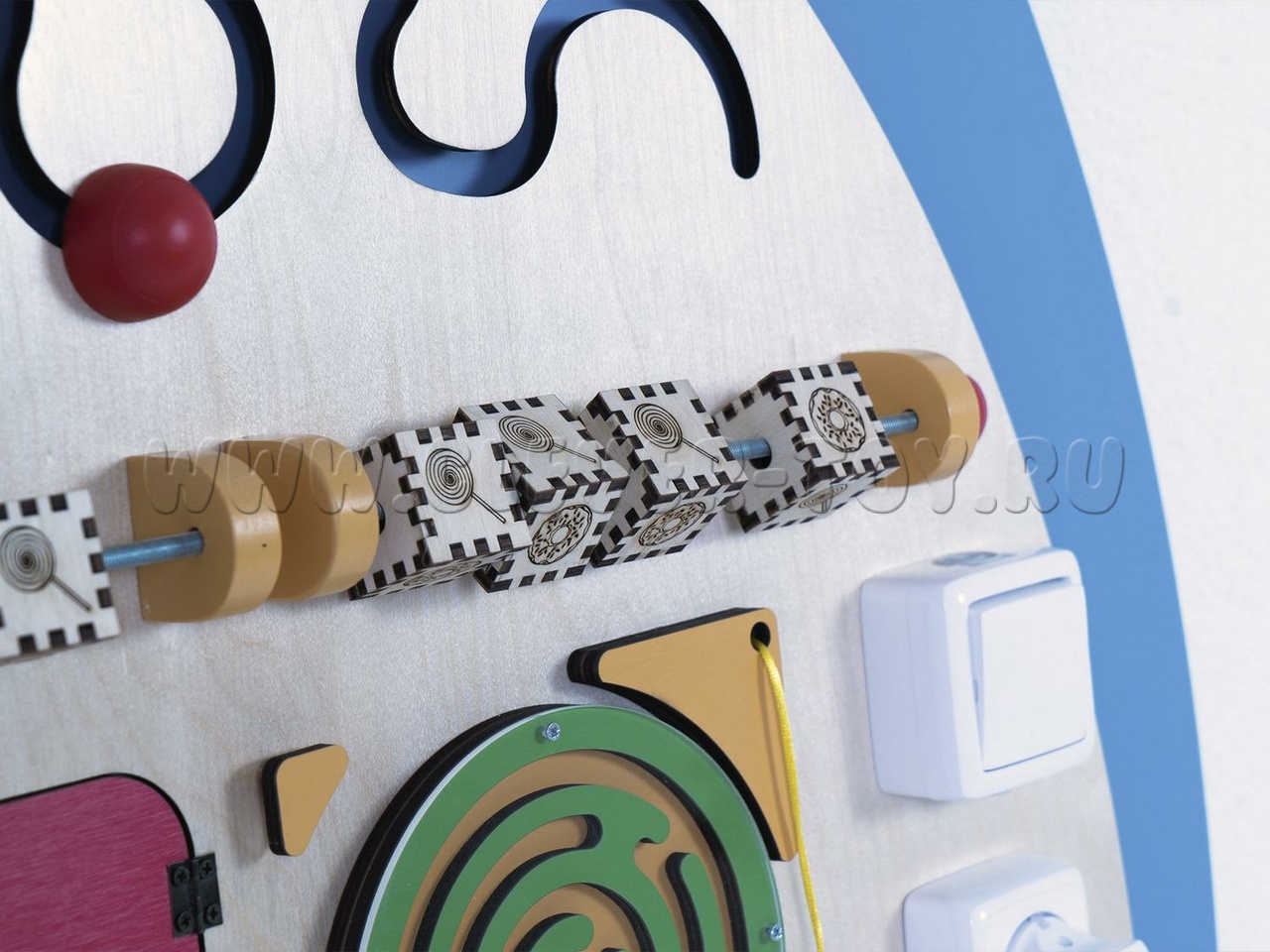 Основная цель бизибордов - помочь детям безопасно освоить предметы быта (замки, крепления, механизмы, переключатели, розетки) и развить мелкую моторику. Используя обесточенные тренажёры с яркими рисунками, дети улучшают свои навыки и готовятся применять их на практике.