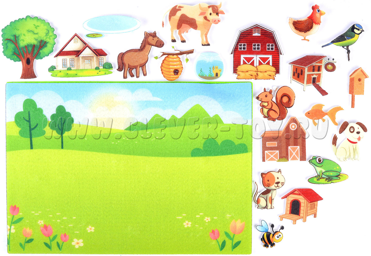 Где только не обитают зверята?! Кто на дереве, кто в воде, а кто в конуре. С помощью тканевого набора «Кто и где живет» ребенок в увлекательной форме узнает, какие жилища бывают у животных. Регулярно занимаясь с учебным пособием, дети узнают больше об окружающем мире, расширят кругозор. Параллельно, при взаимодействии с мягкими деталями они смогут развить мелкую моторику.