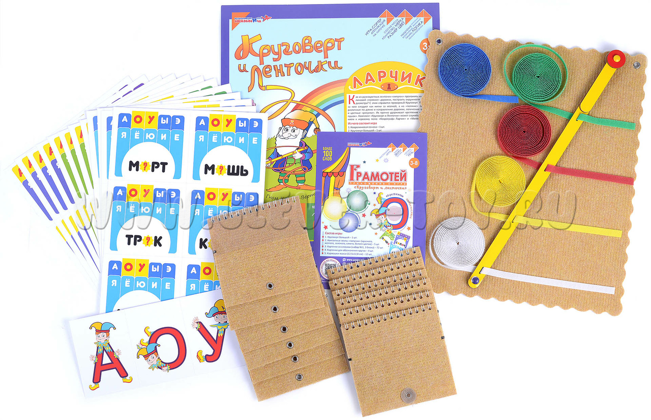 Игра "Грамотей" (Круговерт и ленточки Ларчик + набор карточек)