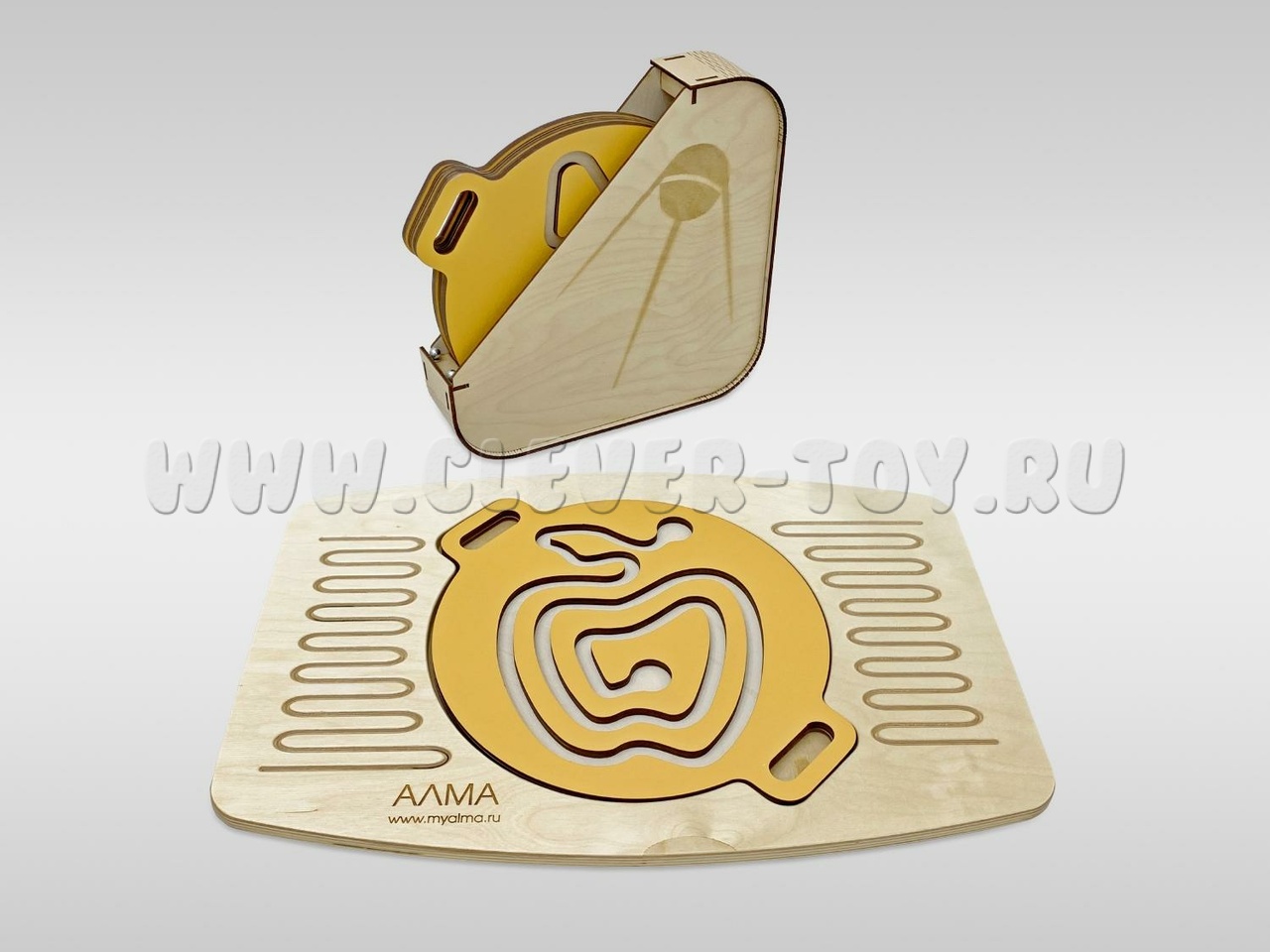Игровой нейротренажёр предназначен для улучшения координации движений, развития внимания и логического мышления. Он состоит из балансира для ног и четырёх лабиринтов-балансиров для рук, которые вставляются в специальное углубление на ножном балансире.