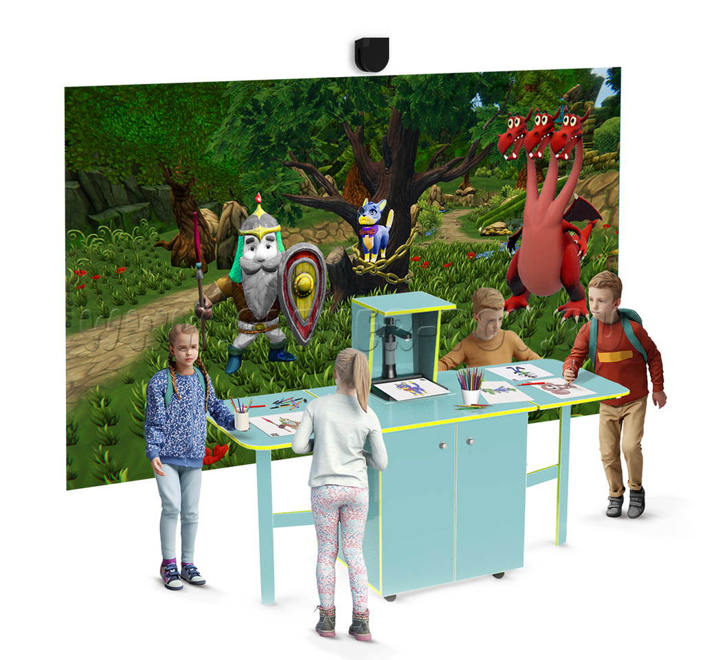 Дети разукрашивают понравившегося героя и кладут его во встроенную сканер камеру, нажимают на кнопку, и через мгновение, их герой, в точности такой, каким они его изобразили, появляется в одной из красочных тематических сцен. Сцены и раскрашенные герои живые и объемные. Герои могут улыбаться, убегать, весело шевелиться или исчезать от касаний или попаданий игровых мячиков.