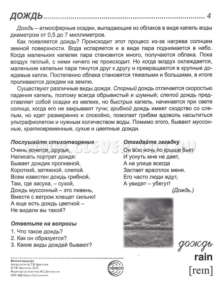 Издательство "ТЦ Сфера" представляет серию "Сфера картинок" под названием "Явления природы". В комплект входят 16 цветных демонстрационных карточек с описанием различных природных явлений.