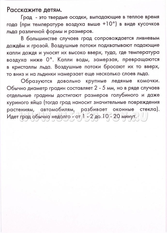 • Подробно опишите любое природное явление, нарисованное на картинке, не называя его. Предложите ребёнку догадаться, о чем идет речь и подобрать соответствующую карточку. Затем поменяйтесь с ребёнком местами: он описывает, вы отгадываете.