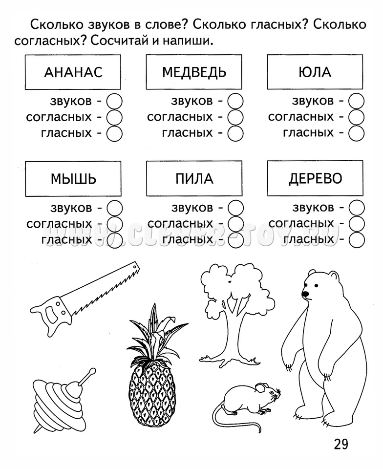 В процессе выполнения заданий дети тренируют устную речь и речь "про себя": слова необходимо озвучить, прислушаться, чтобы понять, какие звуки и в какой последовательности входят в их состав. Детальная проработка упражнений формирует понимание основ фонетики, а также расширяет кругозор ребенка - знакомит его с животными, растениями, явлениями окружающего мира.