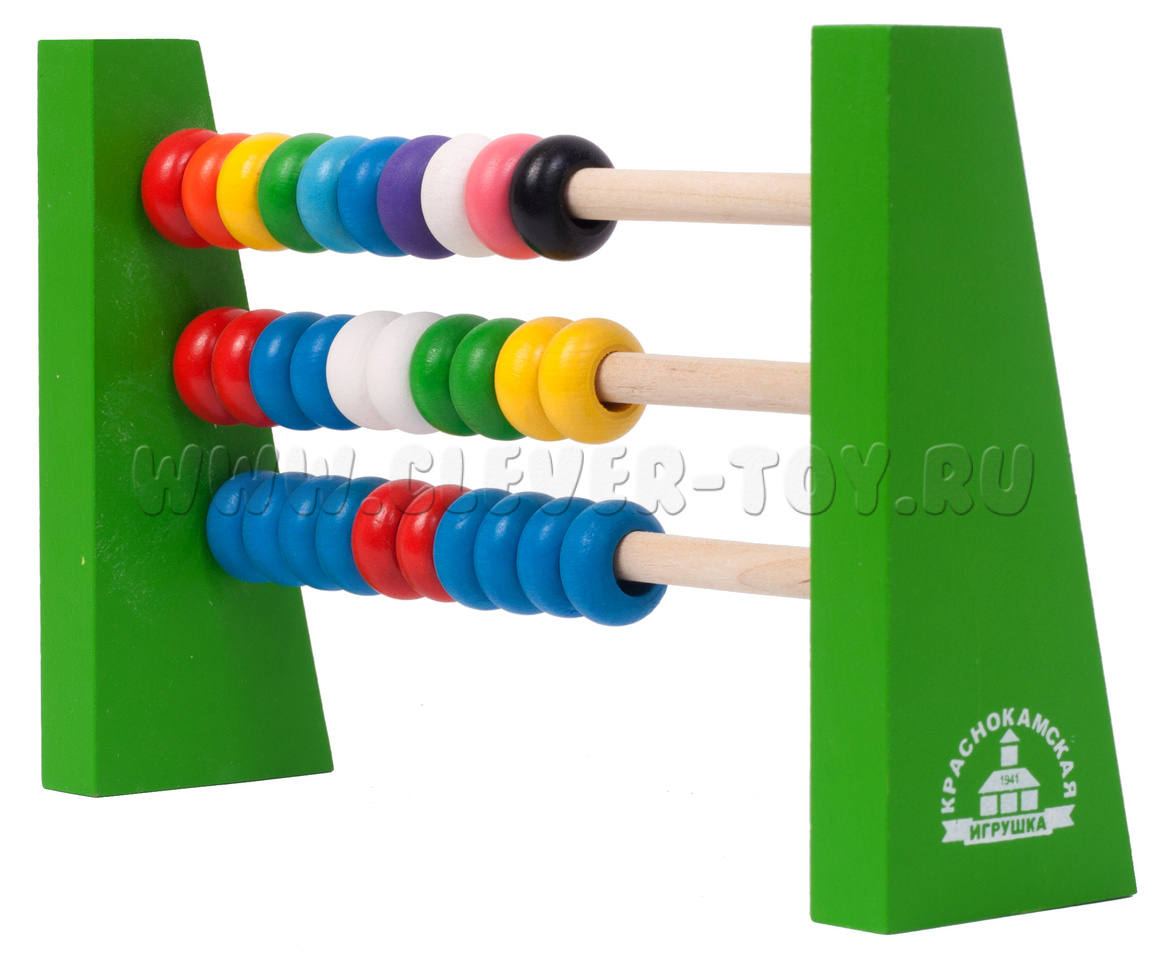 Состав игры: счеты с 30 разноцветными колечками.