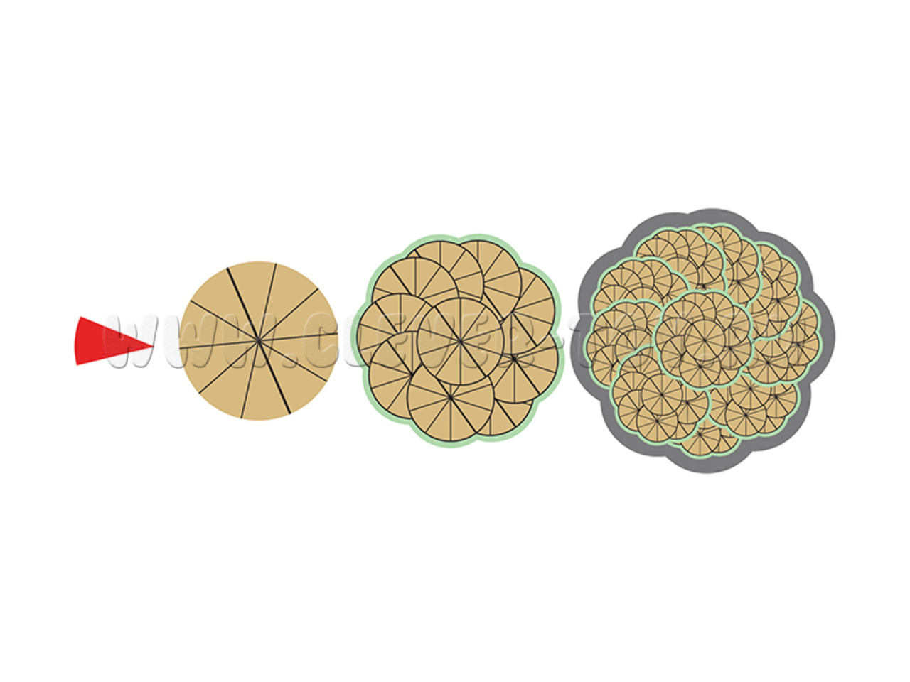тысячи: 10 см х 10 см; сотни: 8 см х 8 см; десятки: 6 см х 6 см.