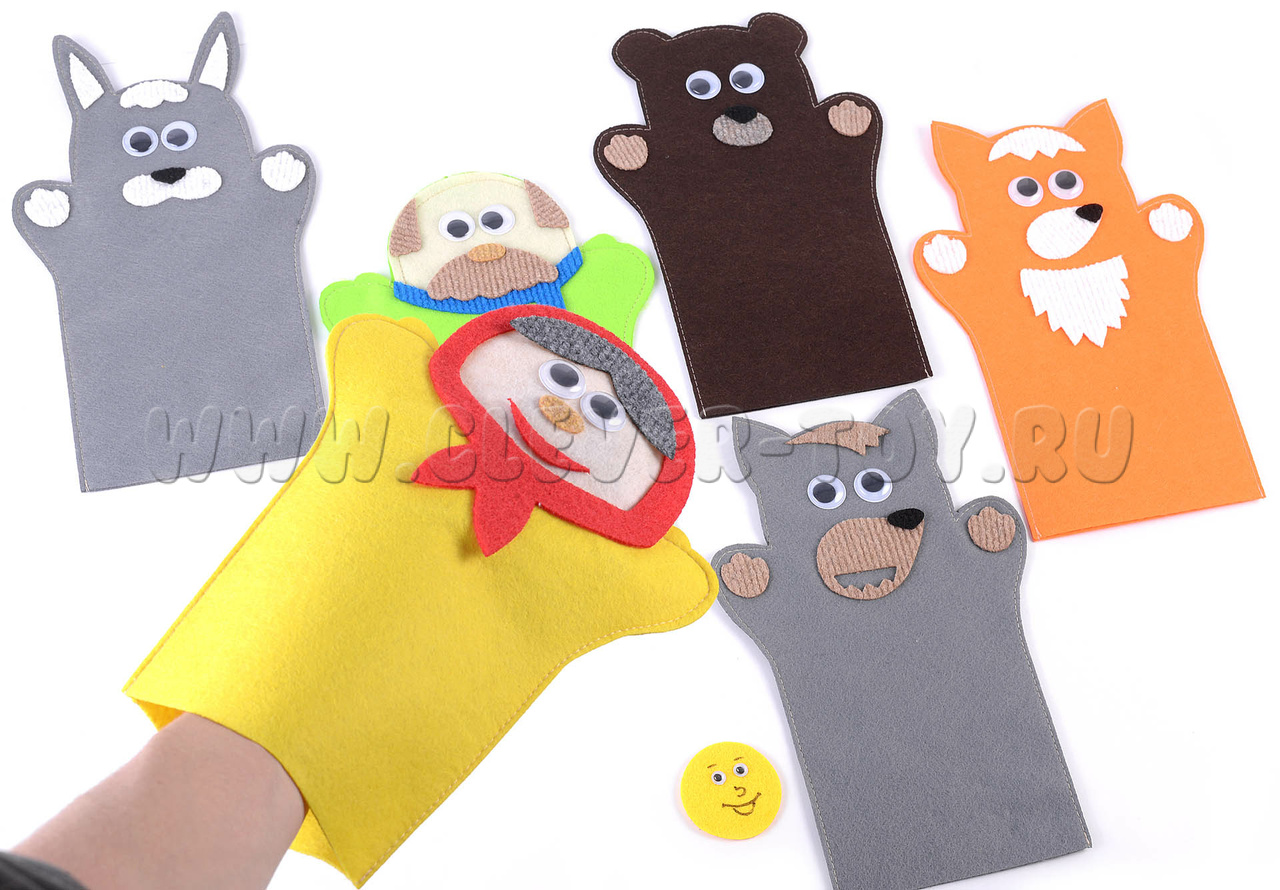 Героев можно использовать при чтении книжки, превращая сказку в анимированное представление. Пусть ребёнок сам покажет, как прыгает зайчик, как крадётся лисичка, как говорит медведь, как катится колобок.