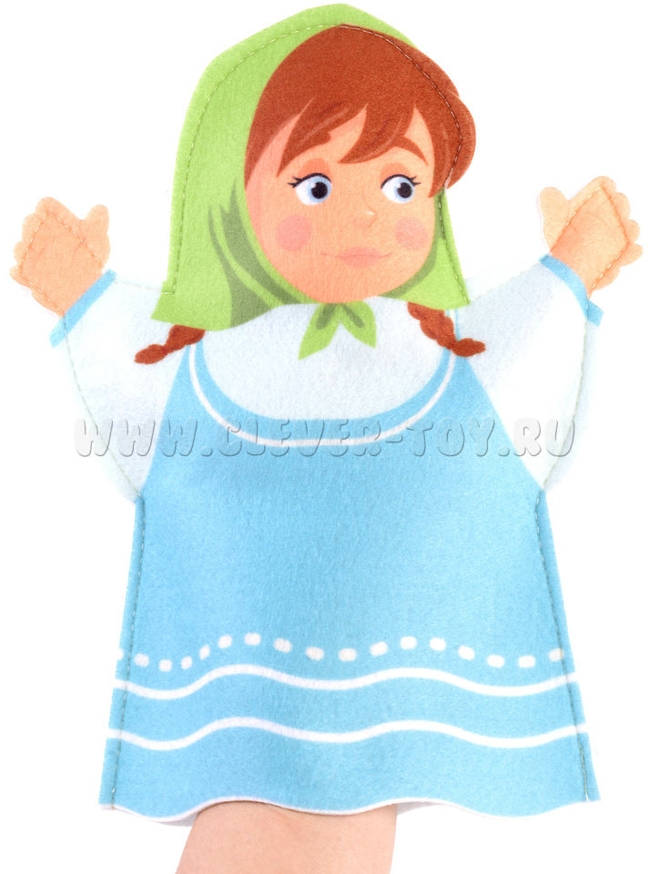 Шесть персонажей из сказки репка на руку 23 см. Бабка, дедка, внучка, собака, кошка, мышка + репка (пальчиковый театр).