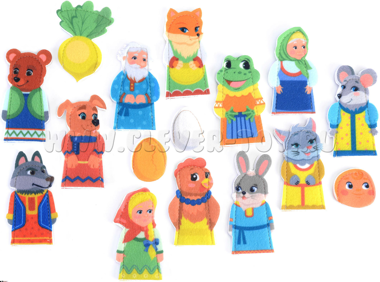 - Пальчиковые фигурки с изображением сказочных героев -16 шт. (размер от 4 до 9,5 см)