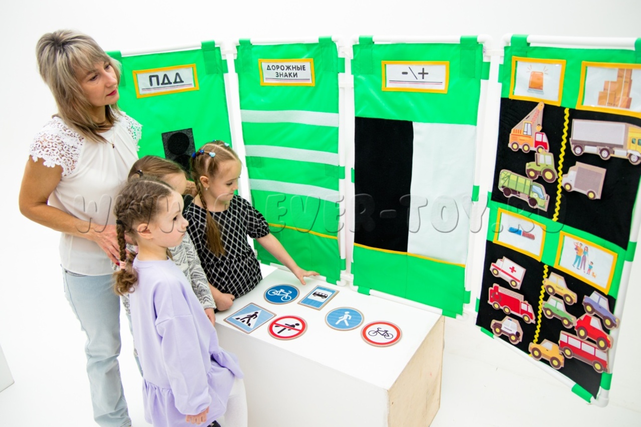 3. Коврик "Дорожное движение" (со съемными элементами домов, светофоров, транспорта и людей).